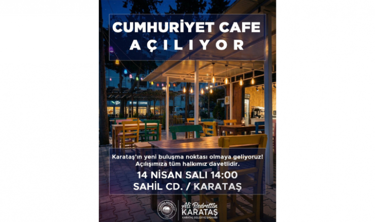 Karataş Belediyesi’nin önümüzdeki süreçte de yeni projelerle ilçeye değer katmaya devam edeceği belirtilirken, Cumhuriyet Cafe’nin açılışı 14 Nisan Salı günü saat 14.00’te gerçekleştirilecek. Başkan Karataş, tüm vatandaşları bu anlamlı açılışa katılmaya davet etti.